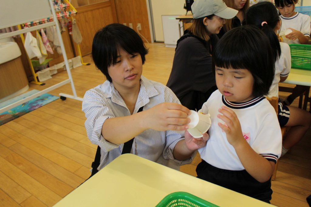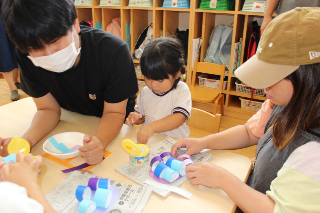 今日は3・4・5歳児の保育参観があり、普段の体操を見てもらった後に、親子で製作をしました☆