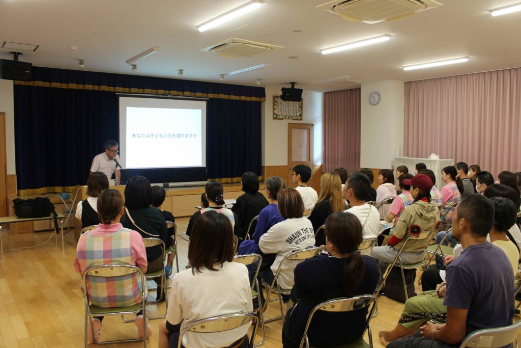 保育参観後は安武信吾さんをお迎えして“あなたは子どもに何を遺せますか”をテーマに講演をしていただきました!「子どもとの時間を大切にしたい」「子どものために何ができるか考えていきたい」等の声があり、とても良いお話をしていただきました!