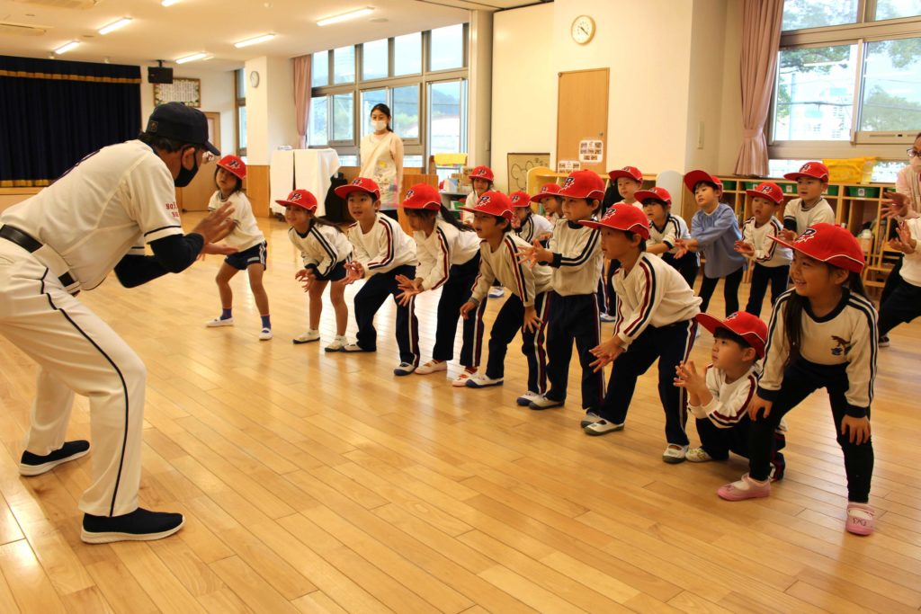 2チームに分かれて向かい合わせになりお友だちが打ったボールを取る!という流れでは、一生懸命ボールを見ていましたよ!回数を重ねるごとに上手になっていました!楽しく野球体験ができ大喜びな子どもたちでした♡