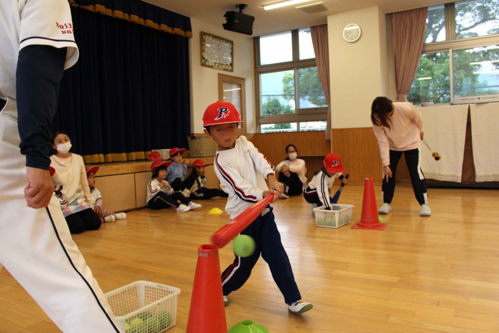 ボールの投げ方やバットの振り方を教えてもらい、キャッチボールをしたり実際にバットでボールを打ったりしました☆
