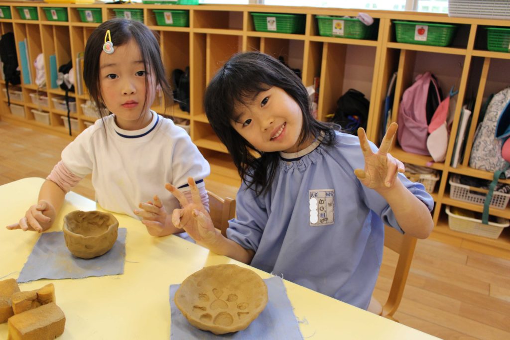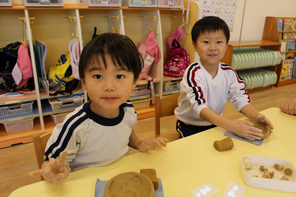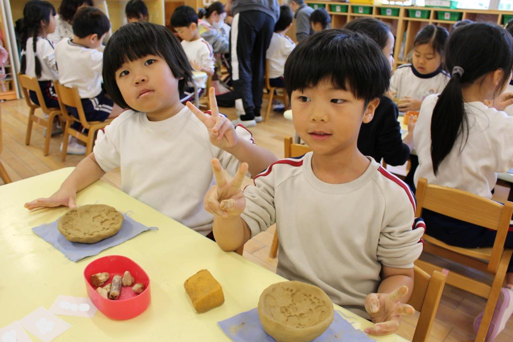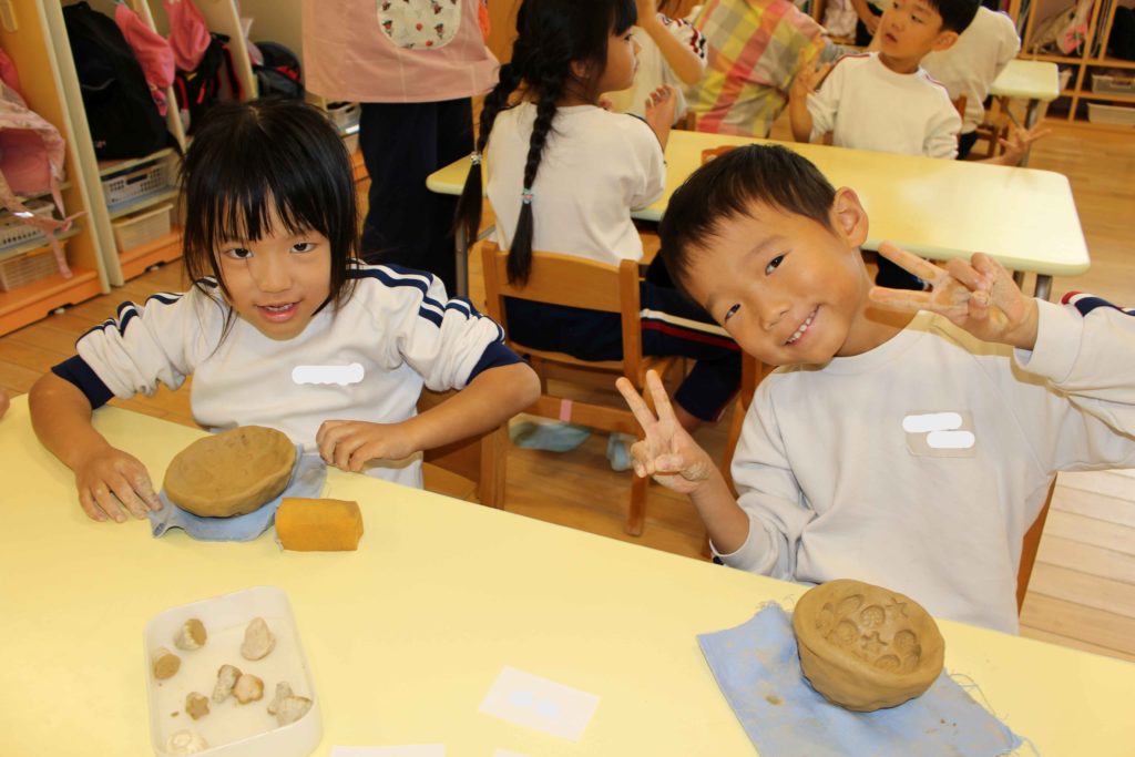 次回、焼きあがった作品に色付けすることを楽しみにしている子どもたちです♡